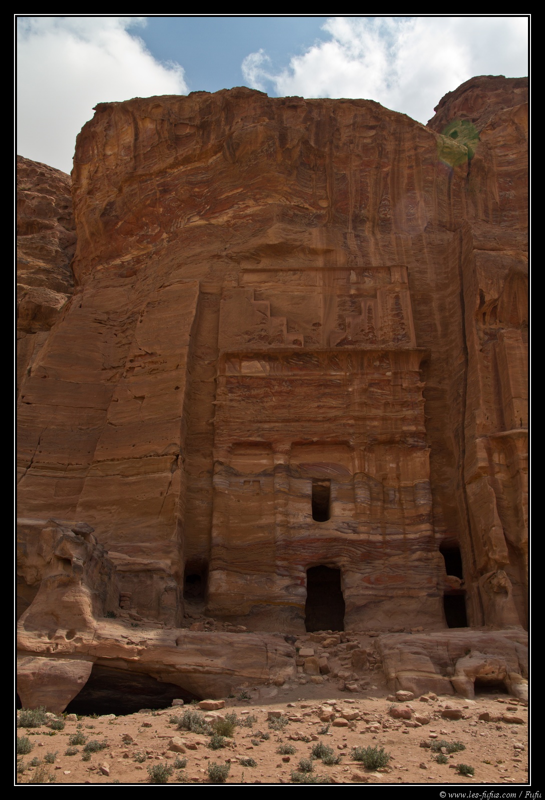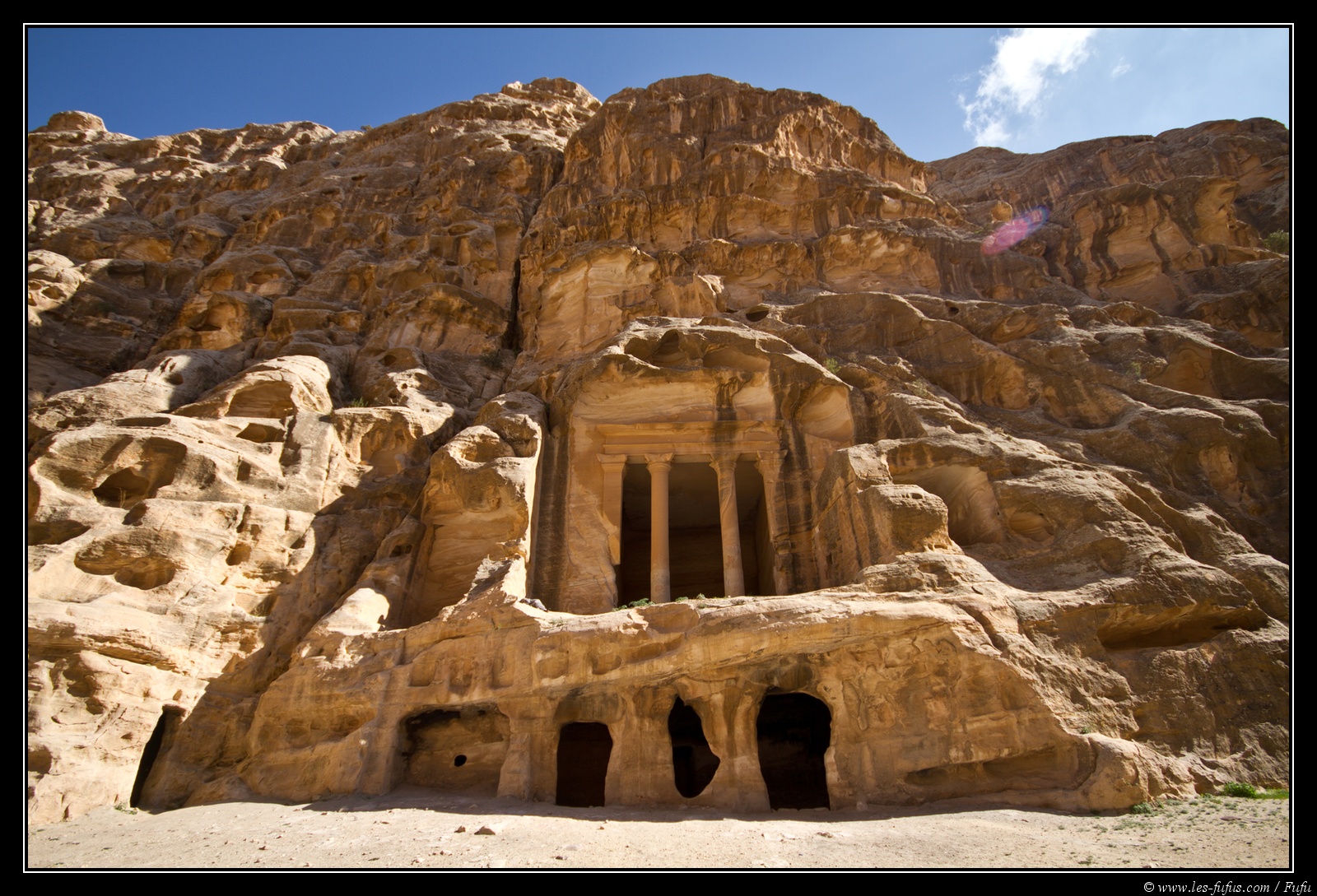 Et pour finir, la Tombe de l’Urne. Celle-ci est remarquable par son mélange de partie sculptée dans la roche et les bâtiments qui ont été rajouté.
