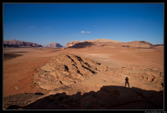De ce point, j’ai une vue imprenable sur les environs. Certes le Wadi Rum n’est pas le plus beau désert que Sabine et moi avons eu la chance de visiter (y a vraiment trop de monde et il y a trop de trace de pneu), mais d’ici, on apprécie tout de même l’ambiance du site.