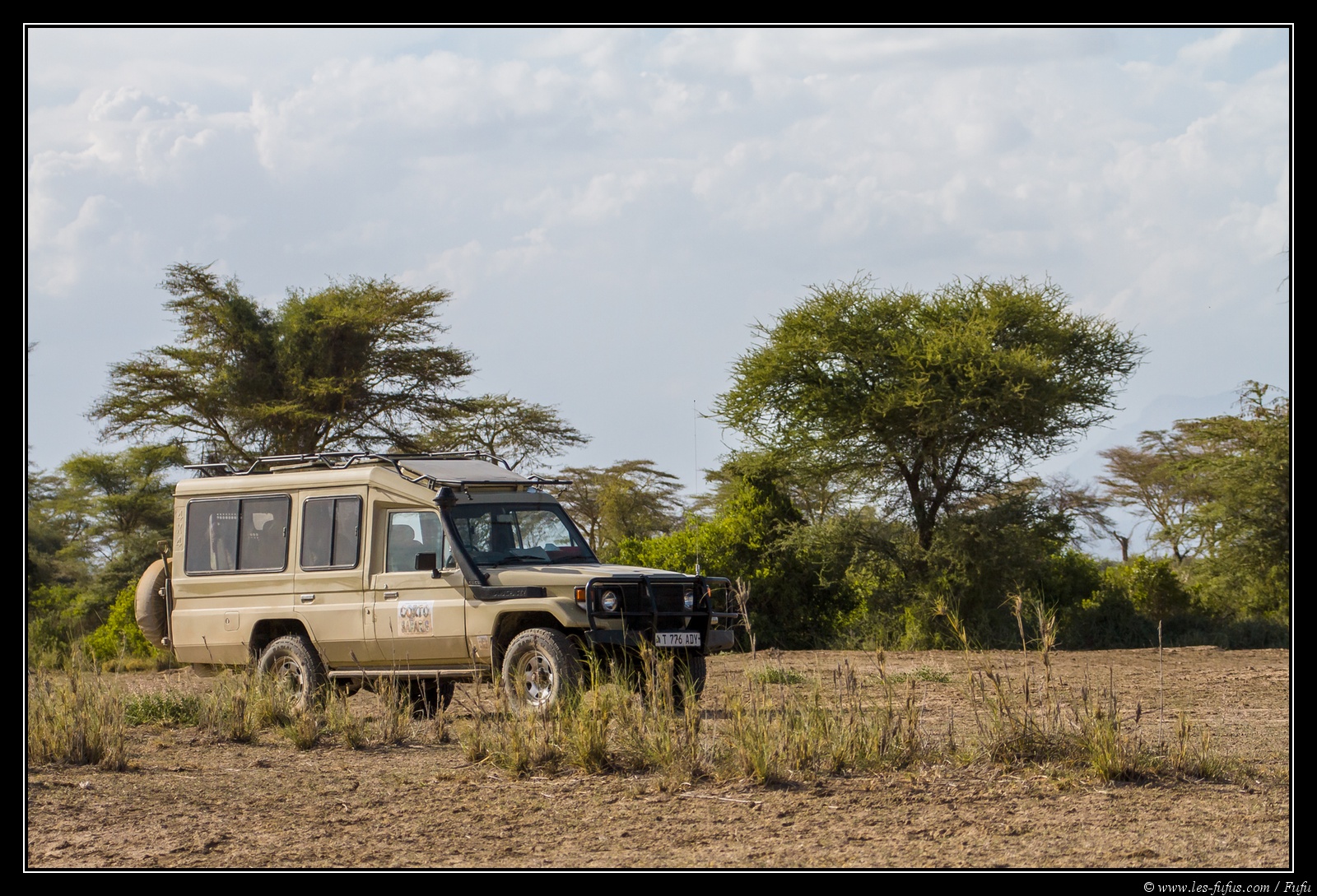 Notre véhicule est là aussi : un 4X4 Land Cruiser modèle Safari (5 places + chauffeur), récent et bien entretenu. C’est rustique, costaud, et le toit peut se soulever afin de pouvoir observer les animaux dans les meilleures conditions. C’est parfait.
