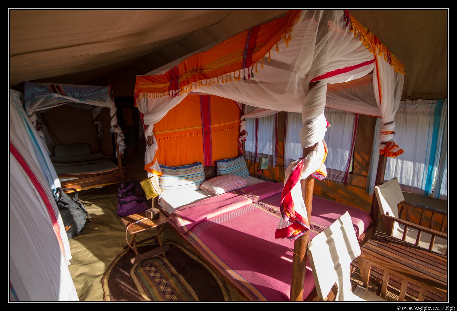 On revient au campement vers 14-15h pour notre déjeuner. Puis nous déciderons de se reposer au soleil le reste de l’après-midi. On est rassasié en animaux.
