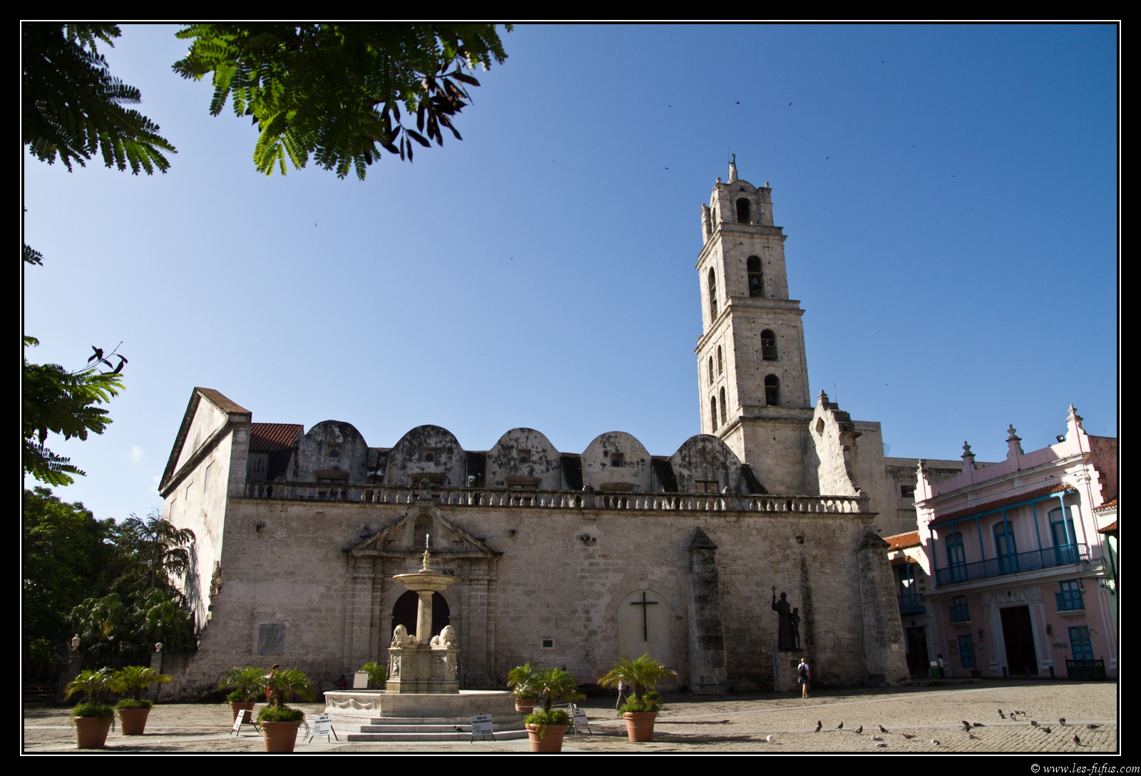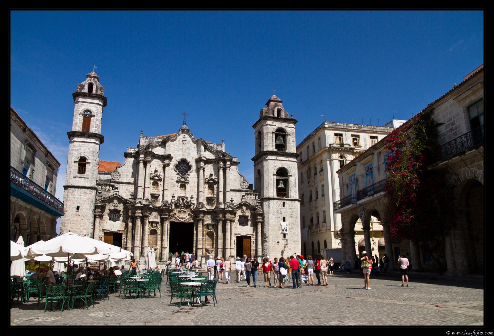 Puis nous remontons vers le nord et faisons une halte au musée du cigare. La visite est sans grand intérêt. Nous sortons et continuons notre chemin jusqu’à la Plaza de la Cathedral et la cathédrale San Cristobal, construite en 1748. C’est une très jolie place.