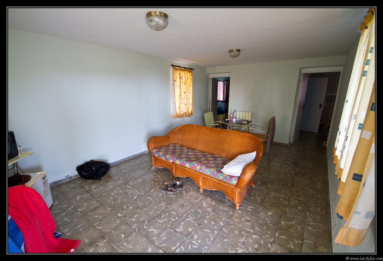 On va rester 2 jours à l’hôtel (il y en a qu’un, c’est le Playa Giròn hotel) et on a prévu une sortie plongée pour le lendemain. On se rend d’ailleurs tout de suite au club pour réserver. On vérifie le matériel d’un coup d’œil, globalement, ça va. Le matériel est correctement stocké, il n’y a pas trop de souci.