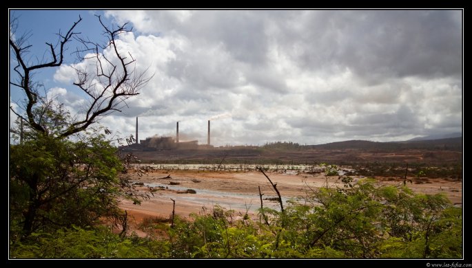 En sortant de la ville, on découvre l’explication ! Une énorme usine (l’usine Ernesto Che Guevara, spécialisé dans le nickel) crache une épaisse fumée sur toute la région. La région est dévastée. On longe une longue ligne route de plusieurs centaines de mètres. Il y a une bonne visibilité et il n’y a qu’une ou deux voitures. Personne d’autre.