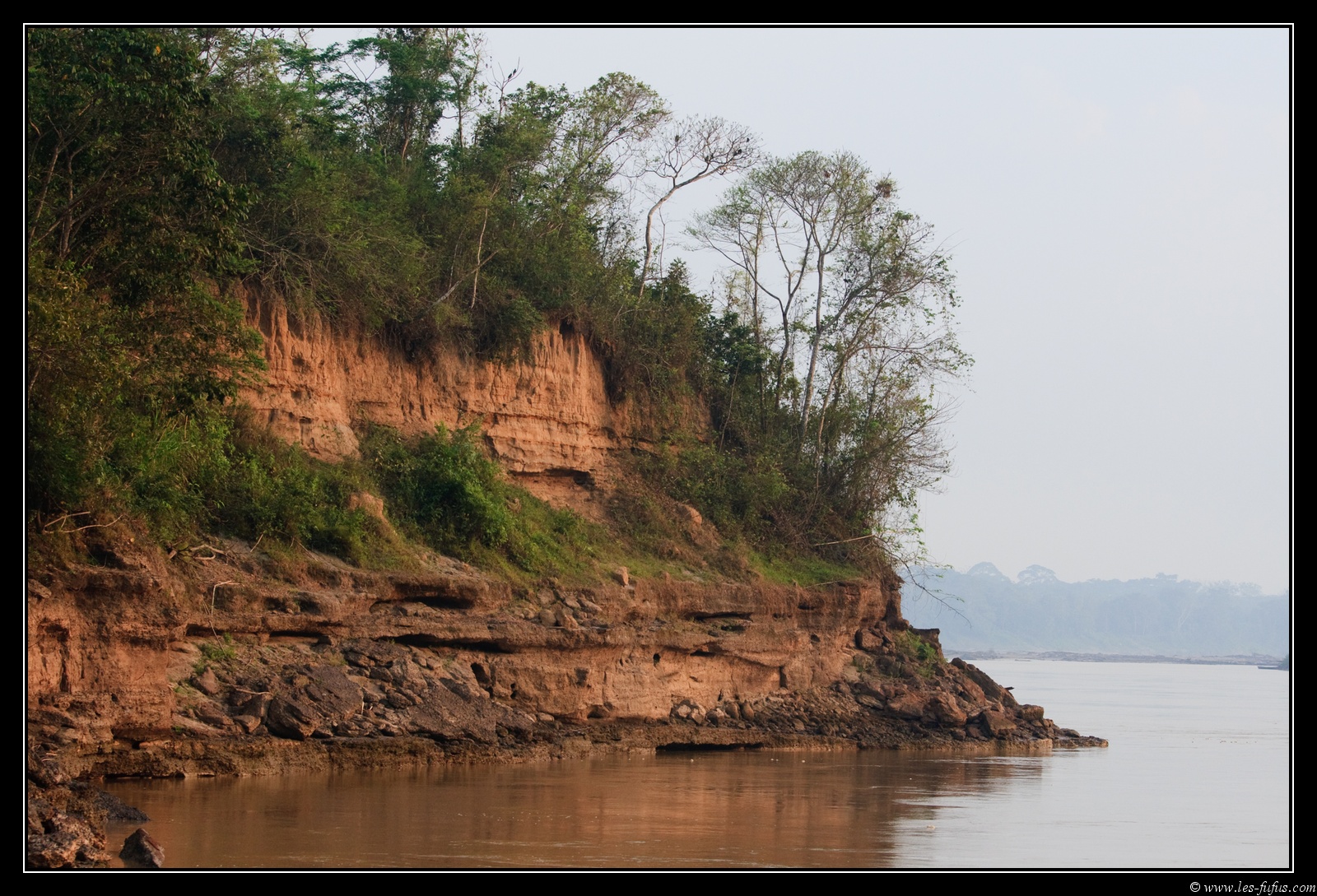 Nous rejoignons alors une embarcation sur le Madre de Dios et atteignons la falaise 20 minutes plus tard.