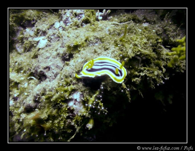 Ensuite nous passons par des récifs, ou encore une fois on peut voir des limaces de mer.
