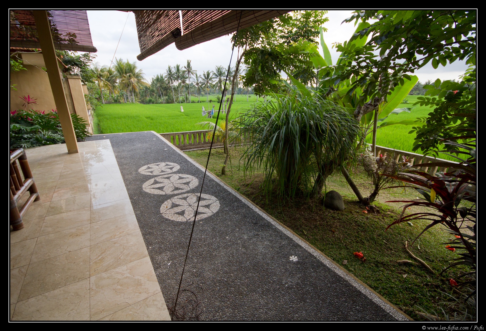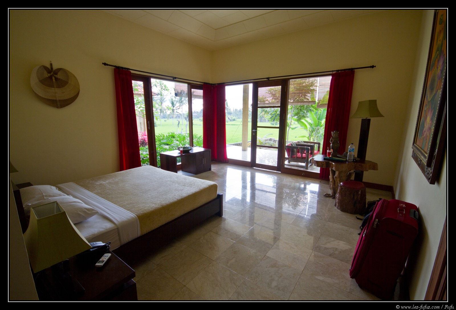 Il est temps désormais d’aller à notre hôtel, le Green Field Hotel. Cet hôtel se trouve à quelques kilomètres du centre-ville d’Ubud. Les chambres, de très grande taille, sont à quelques mètres seulement des rizières. C’est l’un des meilleurs établissements que nous auront durant notre voyage à Bali. On se payera aussi un massage dans la chambre. Un régal