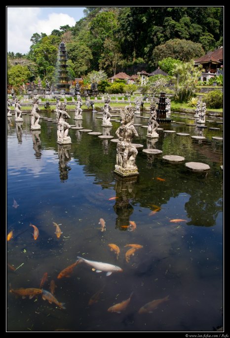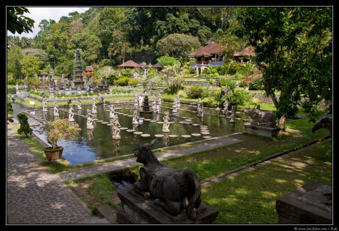Notre destination pour ce matin est le palais de Tirta Gangga (lien Wikipédia). Ce lieu est d’une grande beauté, avec un grand nombre de bassins et de sculptures. On prendra tout notre temps pour flâner dans le parc.
