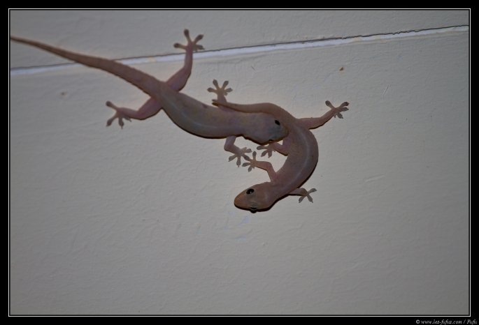 A la nuit tombée, quelques geckos viendront nous rendre visite, dont un superbe gecko Tokay (il fesait bien 15cm de long).