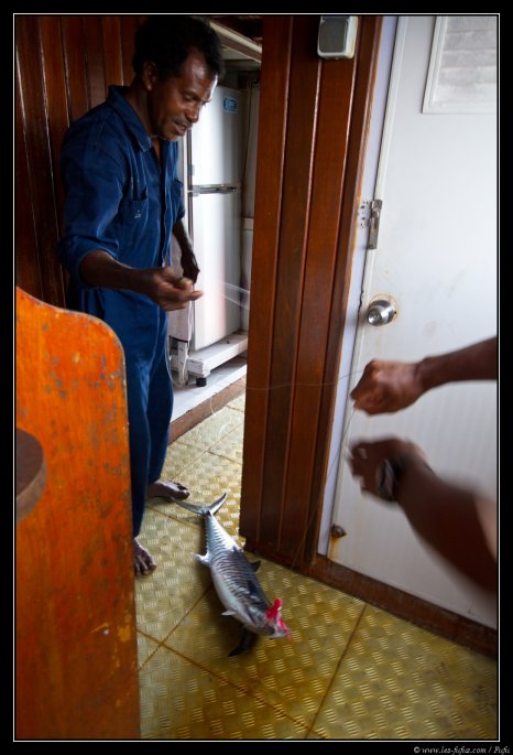 La raison est simple : les matelots pèchent à la traine pendant les trajets, et je crois qu’ils ont trouvé le repas du soir