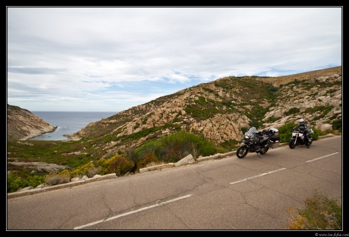 Nous quittons St Florent de bon matin, à nouveau par la route du désert des Agriates. La route est un peu humide et les touristes doivent encore être à leurs hôtels. On marque quelques arrêts photo.