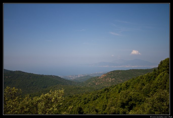 Nous nous retrouvons ensuite sur les crêtes et avec des vues dégagées sur la baie d’Ajaccio.