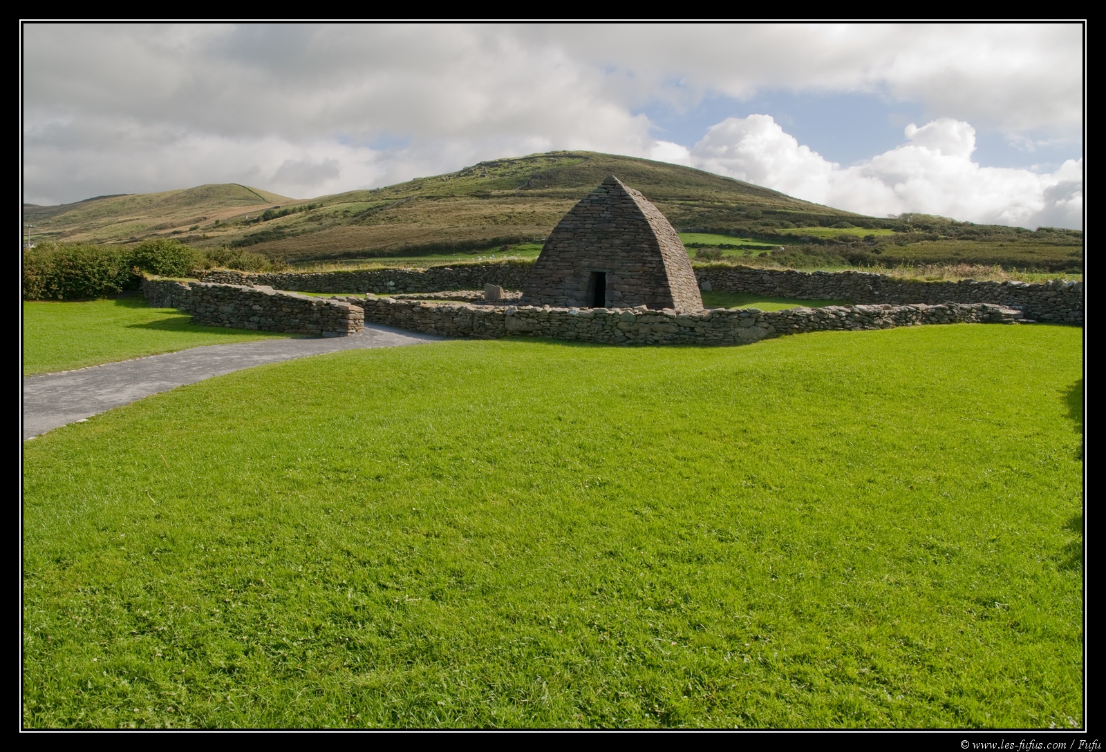 Ces cabanes de forme circulaire en pierres sèches sont déjà mentionnées dans la loi Críth Gablach du VIIe au VIIIe siècle, mais leur construction remonte au Ve siècle, par les moines disciples de saint Patrick. On verra les plus beaux exemples de ces habitations 2 jours plus tard, avec notre visite sur l'ile de Skellig Michael.