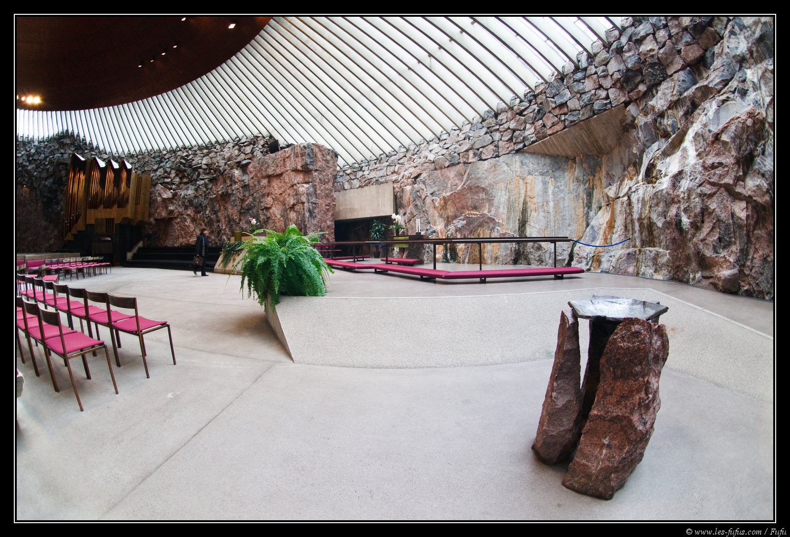 On déambule dans les ruelles, en visitant les boutiques. Nos pas nous emmènent à la Temppeliaukio Church, une église taillée dans la roche (lien Wikipédia)