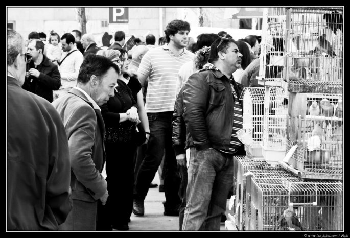 Ce jour-là, juste à coté de l'église se tiens un marché un peu particulier: les marchands ne vendent exclusivement que des oiseaux.