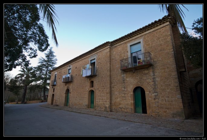 Finalement, il nous montre notre chambre. C’est simple, ca sent un peu le renfermé (2 minutes d’aération et c’est réglé), mais c’est suffisant et propre. Ensuite, on fait le tour du propriétaire. La ferme est jolie, il y a des paons, un cheval, etc…. L’été, cela doit être très agréable. Mais pour le moment, l’ambiance est assez stressante, et nous avons droit à tous les clichés de la Sicile : une vielle mamie tout en noir avec un regard tout aussi sombre, des gens froid aux premiers regards, etc….