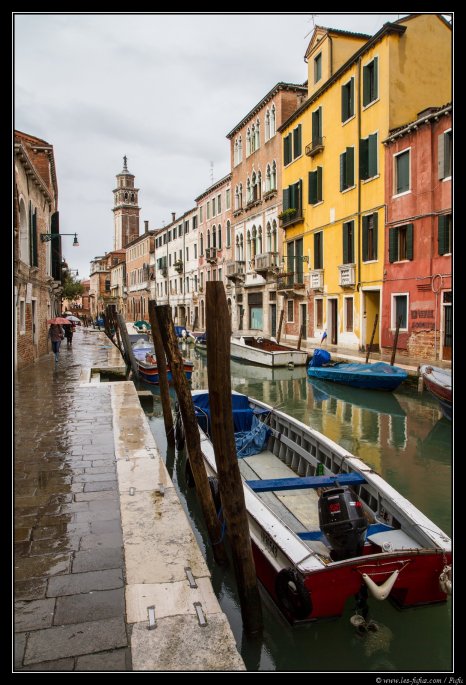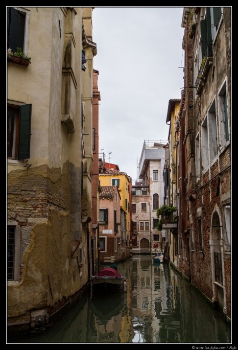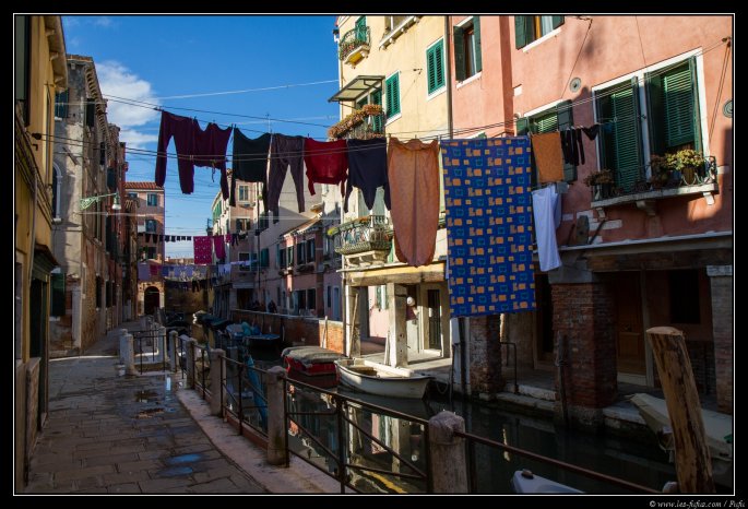 Le beau temps semble finalement de la partie, et un ciel bleu éclatant apparait. Nous retournons sur la place Saint Marco pour un café à une terrasse (qui sont assaillies par les clients), puis nous allons nous perdre dans le quartier de l’arsenal en longeant les quais.