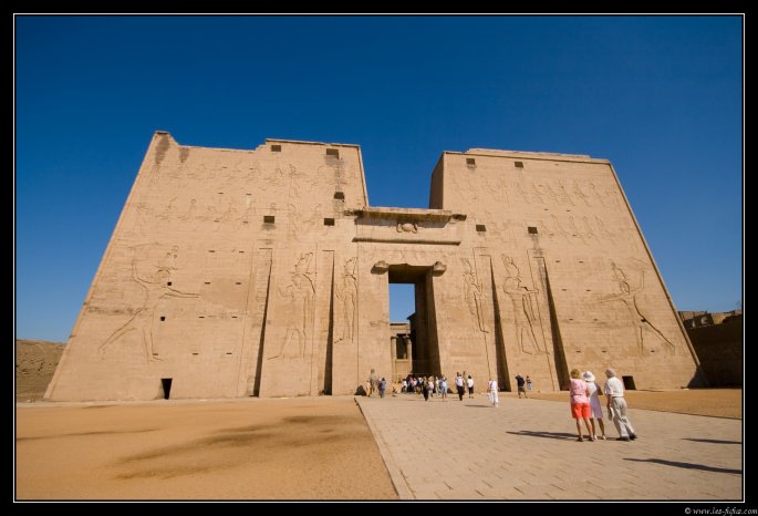Vers 9h00, après un parcours assez inintéressant, on arrive au temple d'Edfou (lien Wikipédia)
