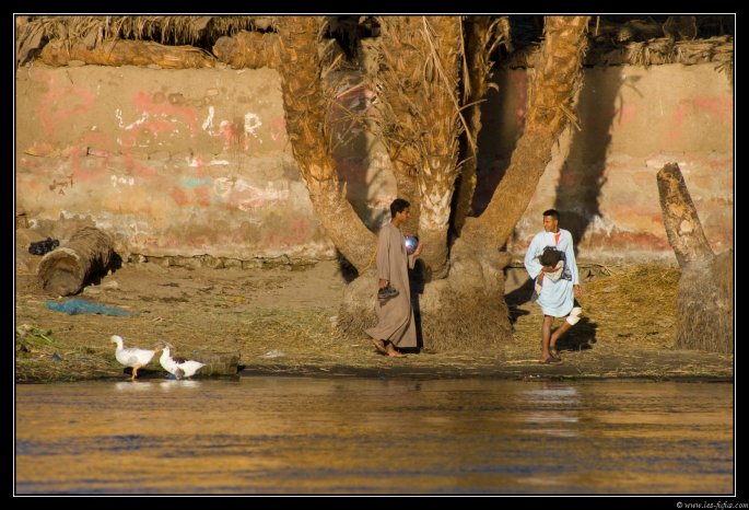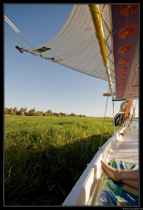 Il n'y a pas grand chose à faire, mis à part rêvasser, admirer le Nil au ras des flots, dire bonjour au gamins sur la rive, photographier les oiseaux, etc... le tout, en buvant du thé à la menthe.