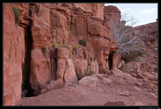 La prochaine étape est le Lawrence's Spring. La source se trouve à plusieurs dizaines de mètres, sur les flancs de la falaise. On peut aussi voir à coté de la source des inscriptions rupestres.