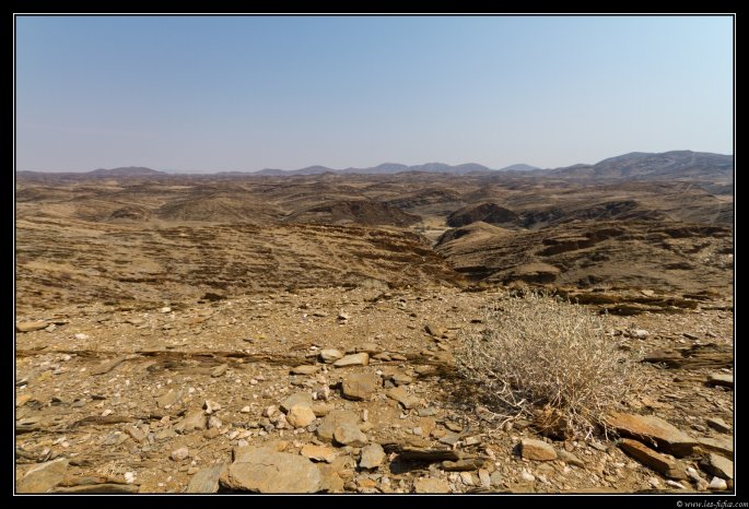 Au bour de quelques heures, la route devient sinueuse, et est par moment goudronnée. Nous arrivons à la Kuiseb Pass. Ce fleuve marque la limite entre le désert de sable du Namib au sud et les déserts (mais sans sable