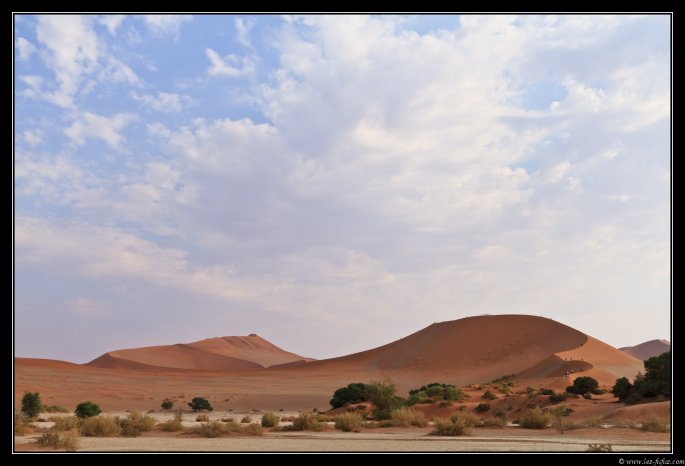 Finalement, on arrive sans aucune difficulté au parking de Deadvlei. Nous sommes les premiers !!!
