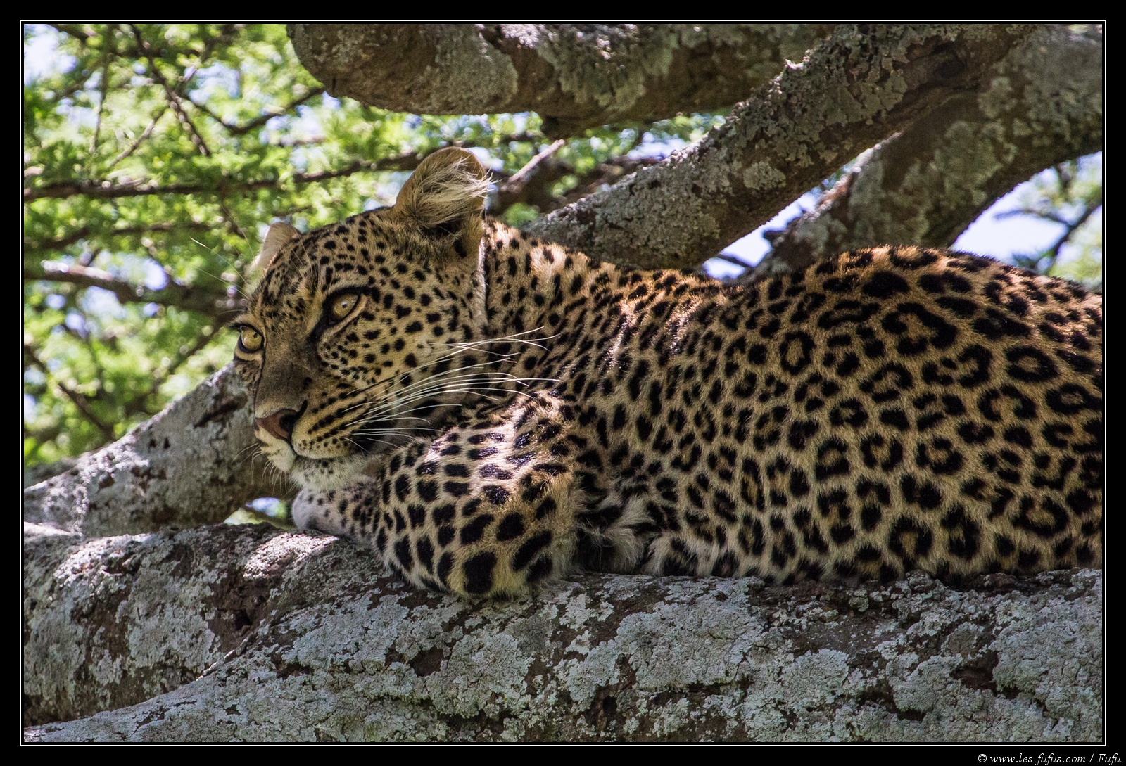 Et après cette première rencontre d’exception, 20 minutes plus tard, ça sera le tour d’un léopard se prélassant en haut d’un acacia (Big five Number 5 validé … et Full Big five validé !!!