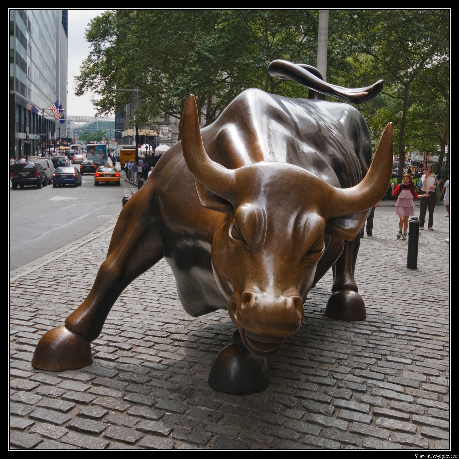 On se dirige vers le Burger King qui fait l'angle de la Church Street et de Liberty Street. En chemin. on croise le célèbre taureau, symbole de la puissance financière.