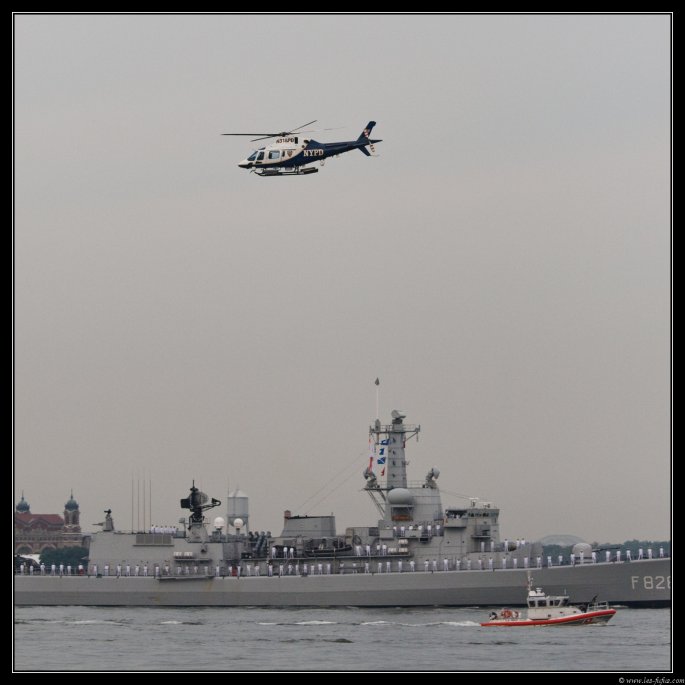 On partira en retard en raison d'une parade de bateaux militaire (une vingtaine) dans l'estuaire de l'Eston. Nous devons attendre qu'ils finissent de passer.