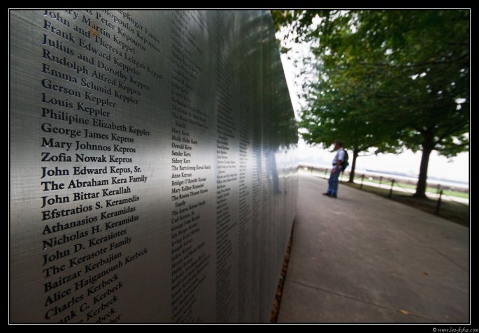 La visite est finalement assez rapide. L'ensemble est un vaste musée sur l'immigration américaine fait de nombreux graphiques et de statistiques. On a finalement peu d'information sur ce qu'il se passait réellement sur l'île et le cheminement des postulants à l'immigration. Ma femme fut d'ailleurs déçue. Dans une salle, on peut consulter les archives (mais cela est payant sur l'île - c'est gratuit par le net) et à l'arrière du bâtiment se trouve un mur de noms des gens qui ont immigrés .... c'est l'occasion de rechercher un parent lointain ou simplement un patronyme ... ce qui fut mon cas