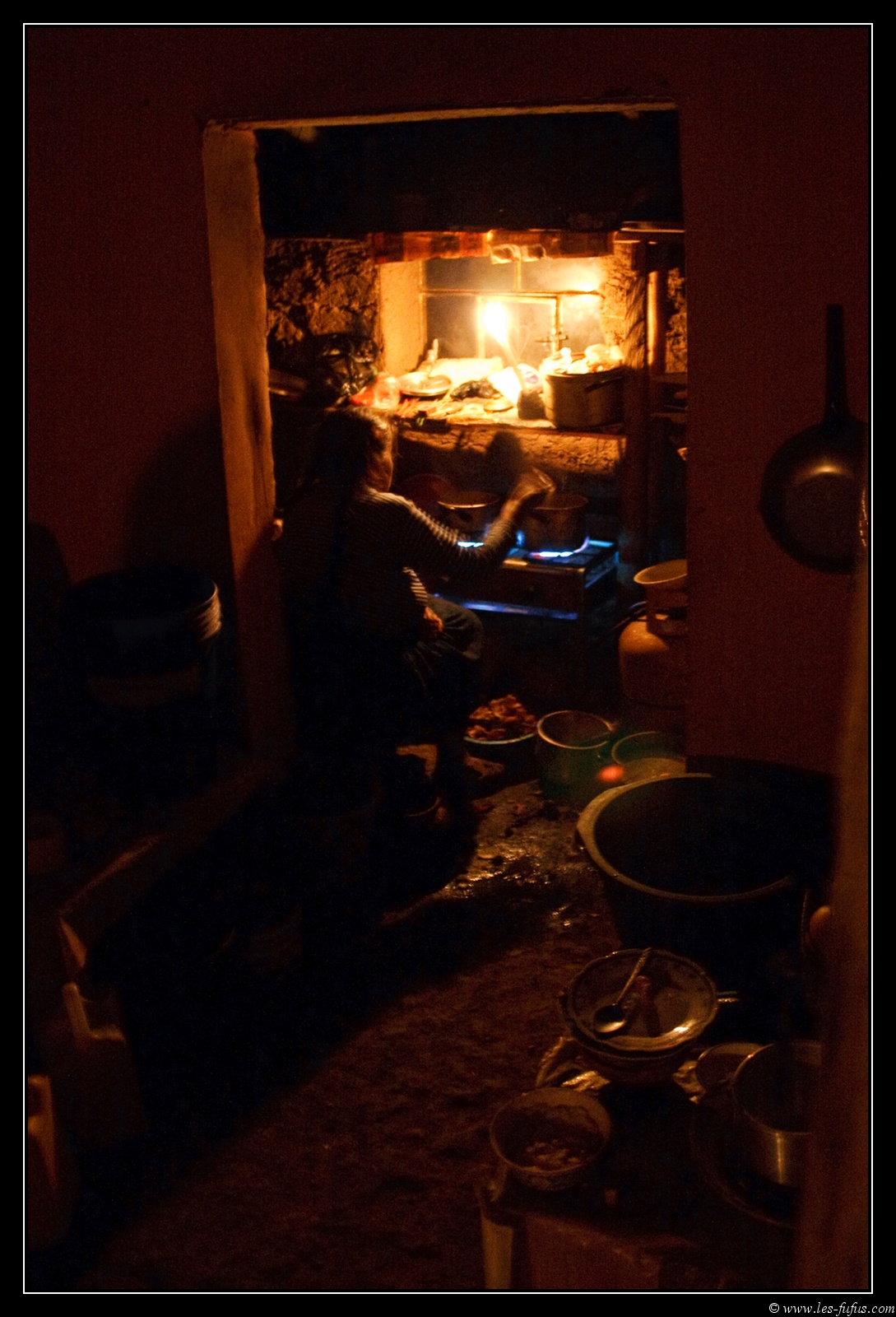 Quand a la cuisine, une photo parle mieux qu’un long discours : un coin gaz, un feu de bois, le tout assis par terre.