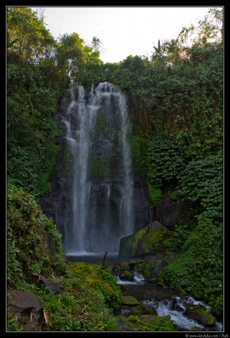 Nous quittons l’hôtel pour rejoindre un petit parking situé à seulement quelques kilomètres. Nous avons au programme une petite marche matinale d’une heure en forêt. Le chemin allé se fait par une descente escarpée qui mène à une très jolie cascade. L’endroit est frais - on ressent bien la différence de température stimulée par les embruns.