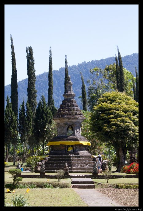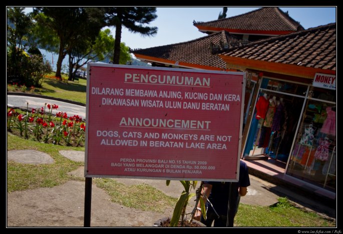 La route se poursuit et nous entamons la descente sur un autre lac, le lac Danau Beratan et son célèbre temple (Bratan Temple - lien Wikipédia). Nous faisons donc la visite qui mérite que l’on s’y attarde. A titre d’information, si vous souhaitez visiter ce temple, sachez que les chiens et les chats ne sont pas admis ….. et les singes non plus