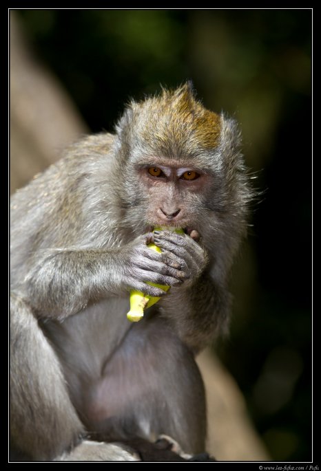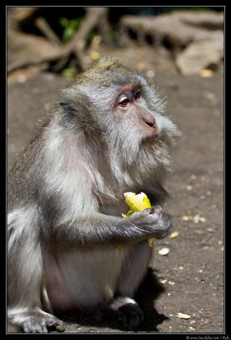 Nous quittons la petite ville pour revenir sur nos pas et bifurquer ensuite pour rejoindre la côte. Juste après le départ on marque un arrêt rapide le long de la route, là où les singes ont leurs habitudes. C’est l’occasion de leur donner quelques fruits et de faire des photos en échanges.
