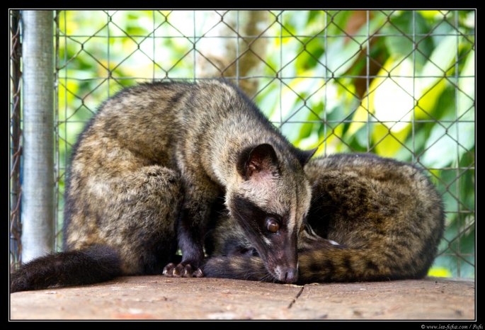 Une petite photo des civettes, malheureusement élevées dans des cages bien trop petites.