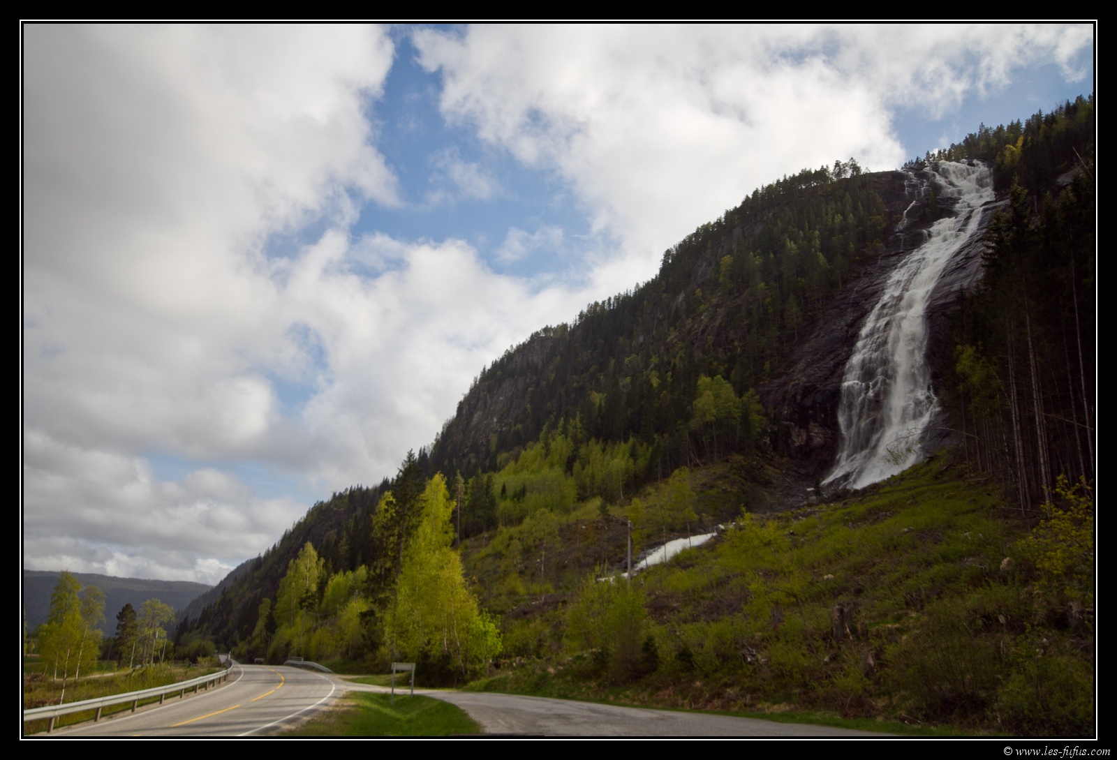Je poursuis donc sur la route de la vallée et m’arrête à la cascade Reiårsfossen près d’Ose. Elle fait plus de 200m de haut
