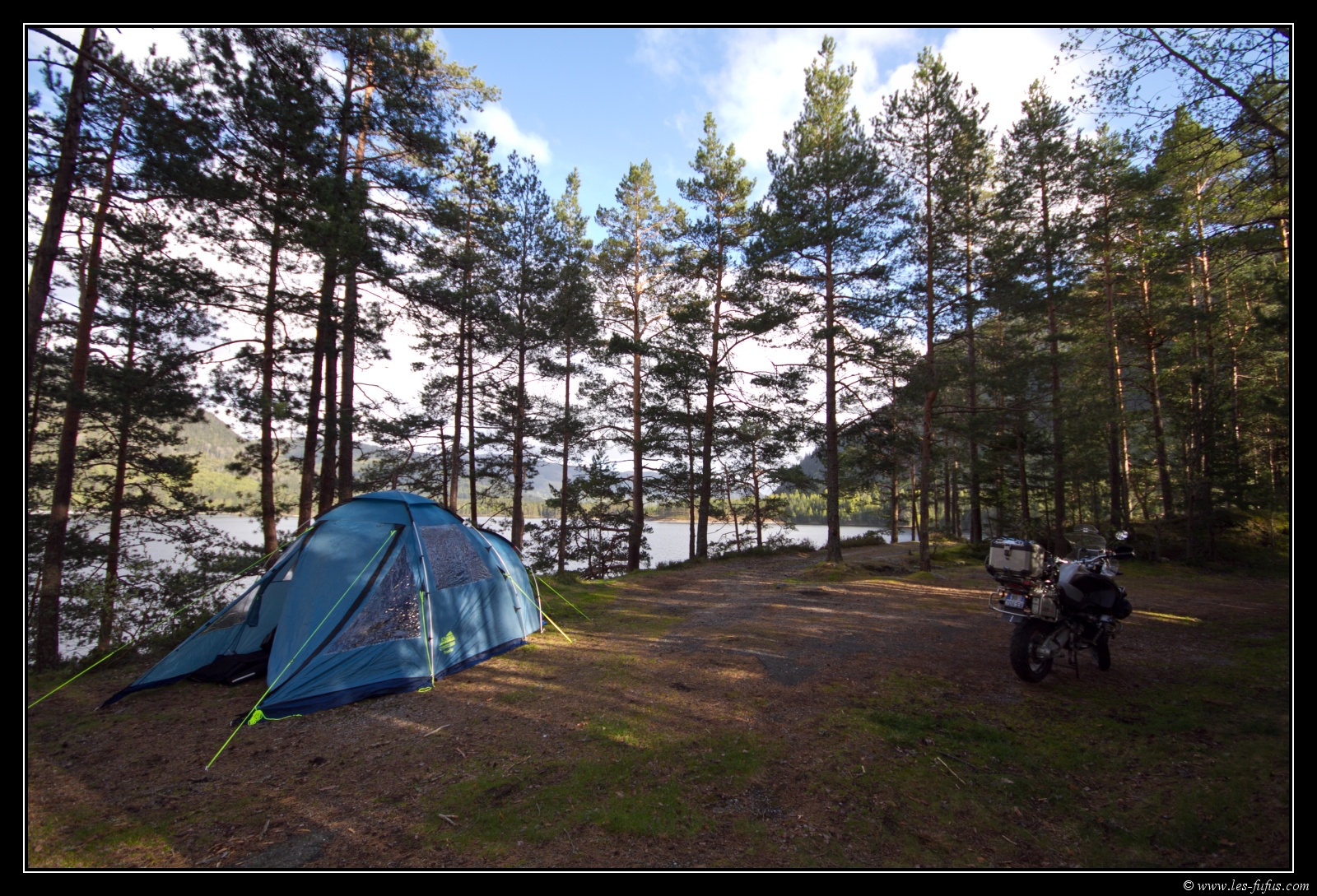 A proximité de Bygland, je me trouve un bivouac, surplombant le fjord Byglandtsfjorden.