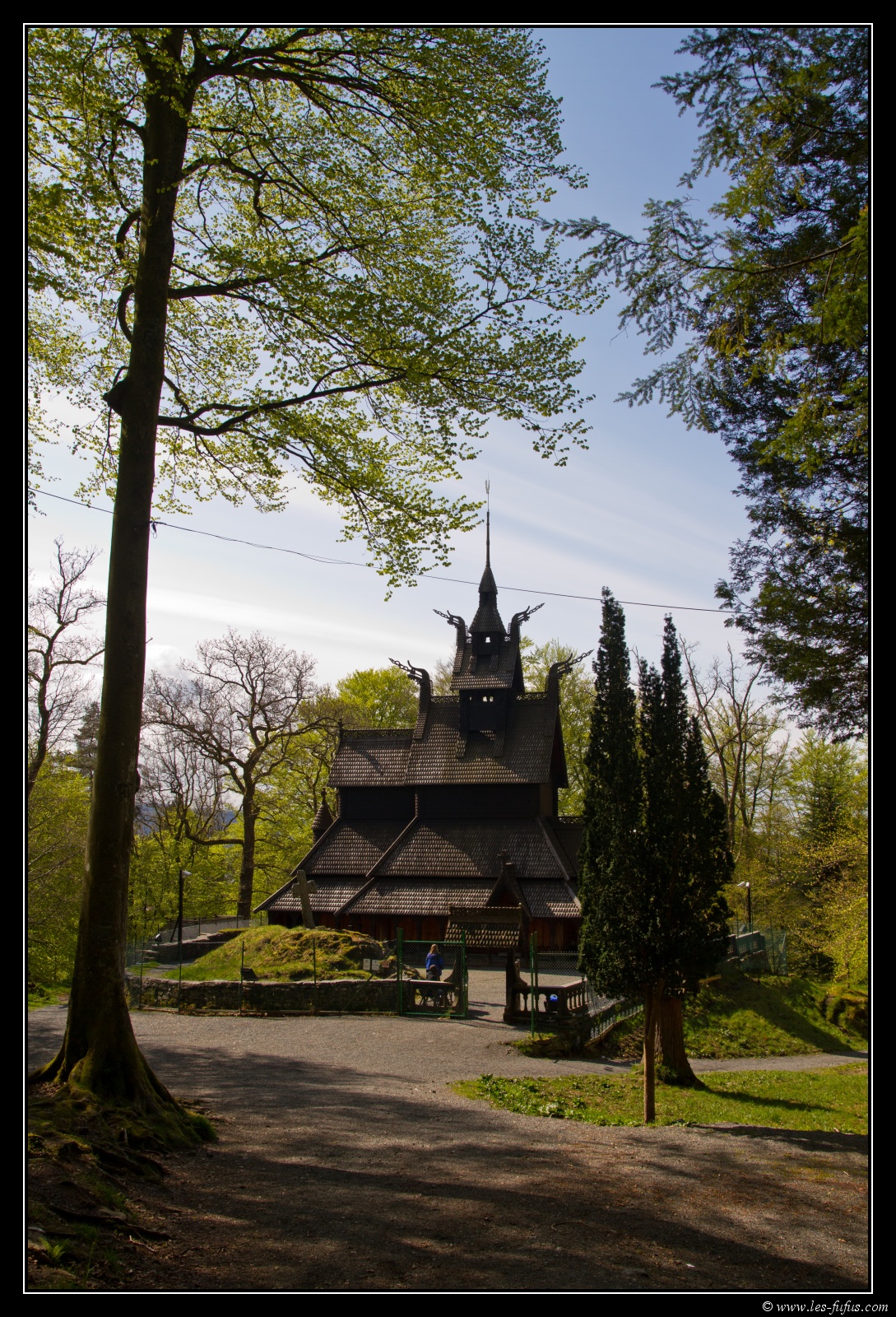 Vers 9h30, je pars vers le sud de Bergen pour visiter la petite église en bois debout de Fantoft (lien Wikipédia). Elle a brulé il y a 20 ans et c’est désormais une reconstruction. Elle vaut tout de même le coup, perdue au milieu d’une petite forêt.
