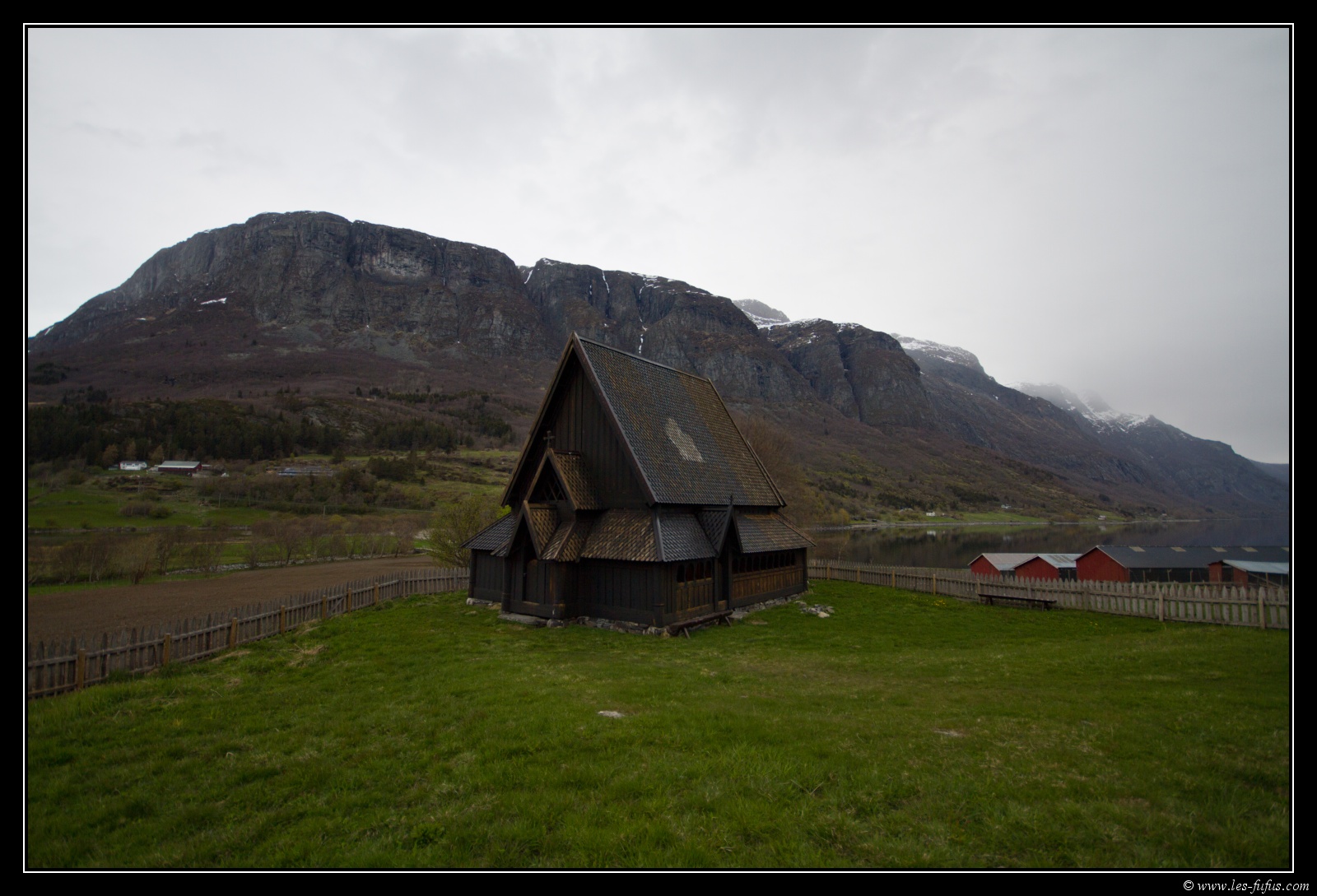 On débouche dans la vallée de Lærdalen et je m’enfonce dans les montagnes et rejoins la ville de Borgund. La visite de l’église en bois debout locale s’impose (lien Wikipédia). C’est la plus ancienne, elle date de 1160.