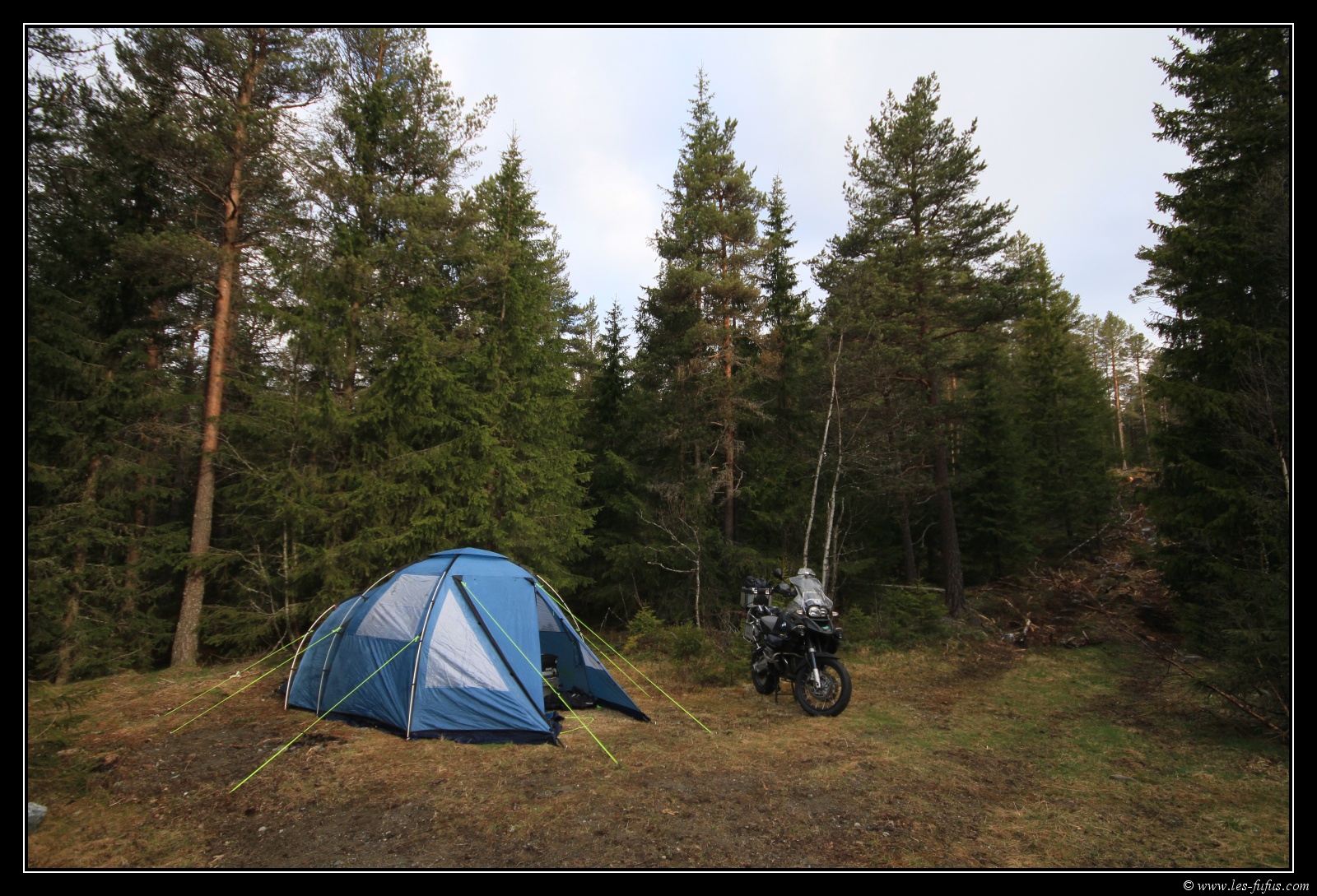 et trouve une petite clairière sympathique. Je coupe le moteur. C’est assez pour aujourd’hui.