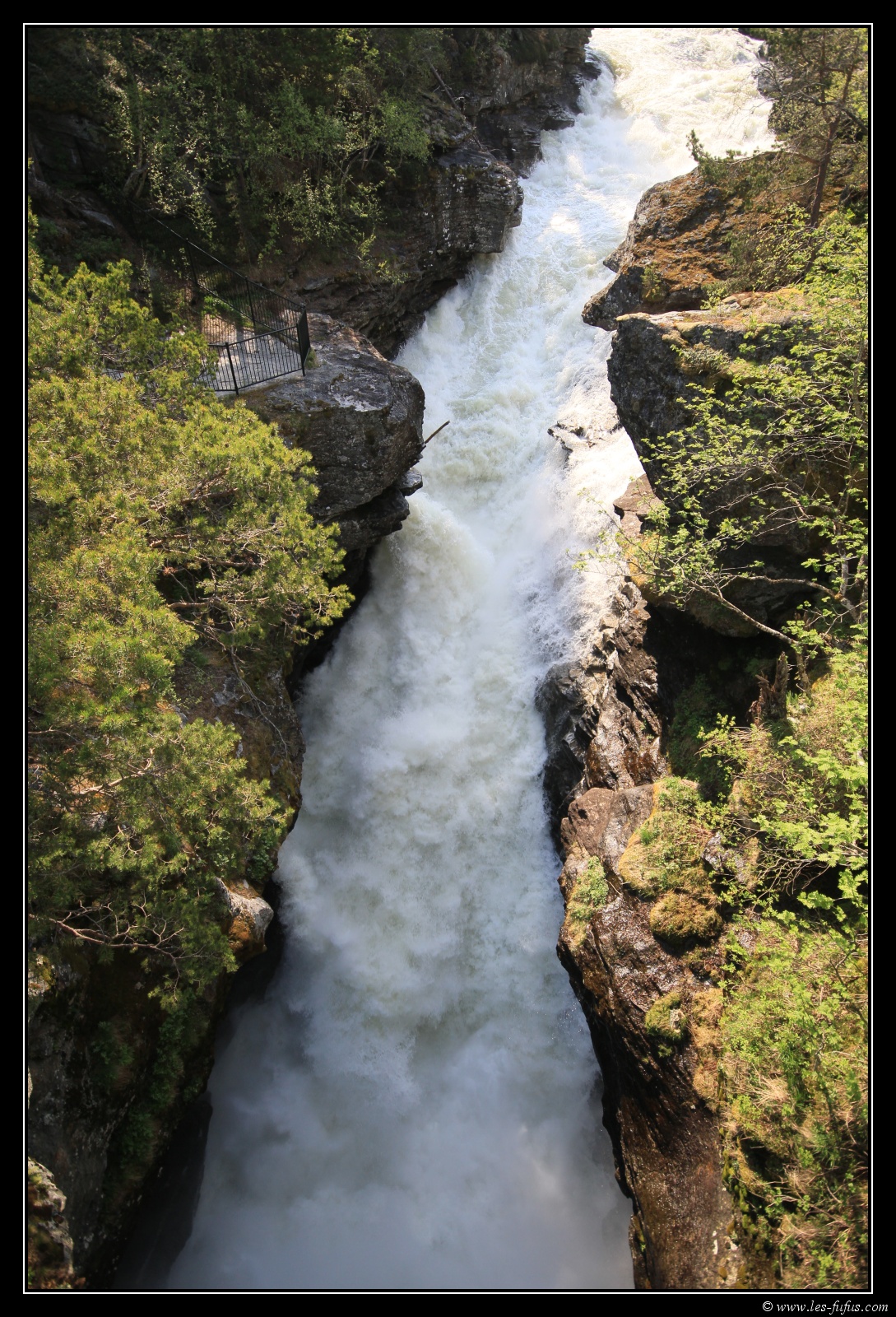 La descente sur Oppdal est sans réel intérêt. Un seul lieu mérite un arrêt : Måggålaupet. C’est une sorte d’étranglement, où une rivière de 20m de large doit se frayer un chemin dans un goulot de 3m. Forcément … ça coince