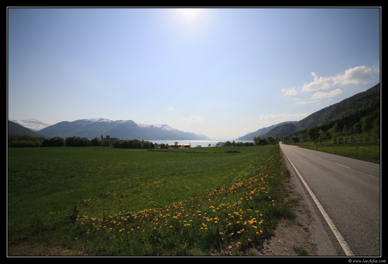 Arrivé à la ville de Sunndalsøra, je fais un crochet pour rejoindre Innerdalen, une vallée réputée comme étant l'une des plus jolies de Norvège. C’est en effet très plaisant, il n’y a personne hormis les agriculteurs travaillant dans leurs champs.