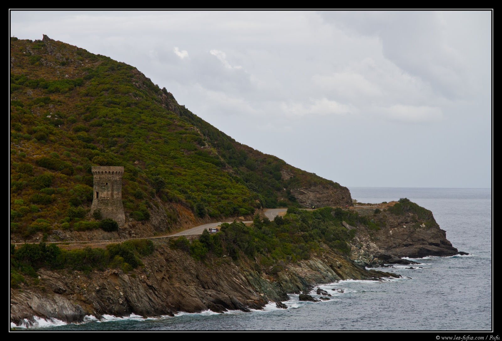 Donc finalement, on reprend la route principale et partons en direction du Cap Corse. Nous marquons un premier arrêt à la Tour Génoise de Miomo