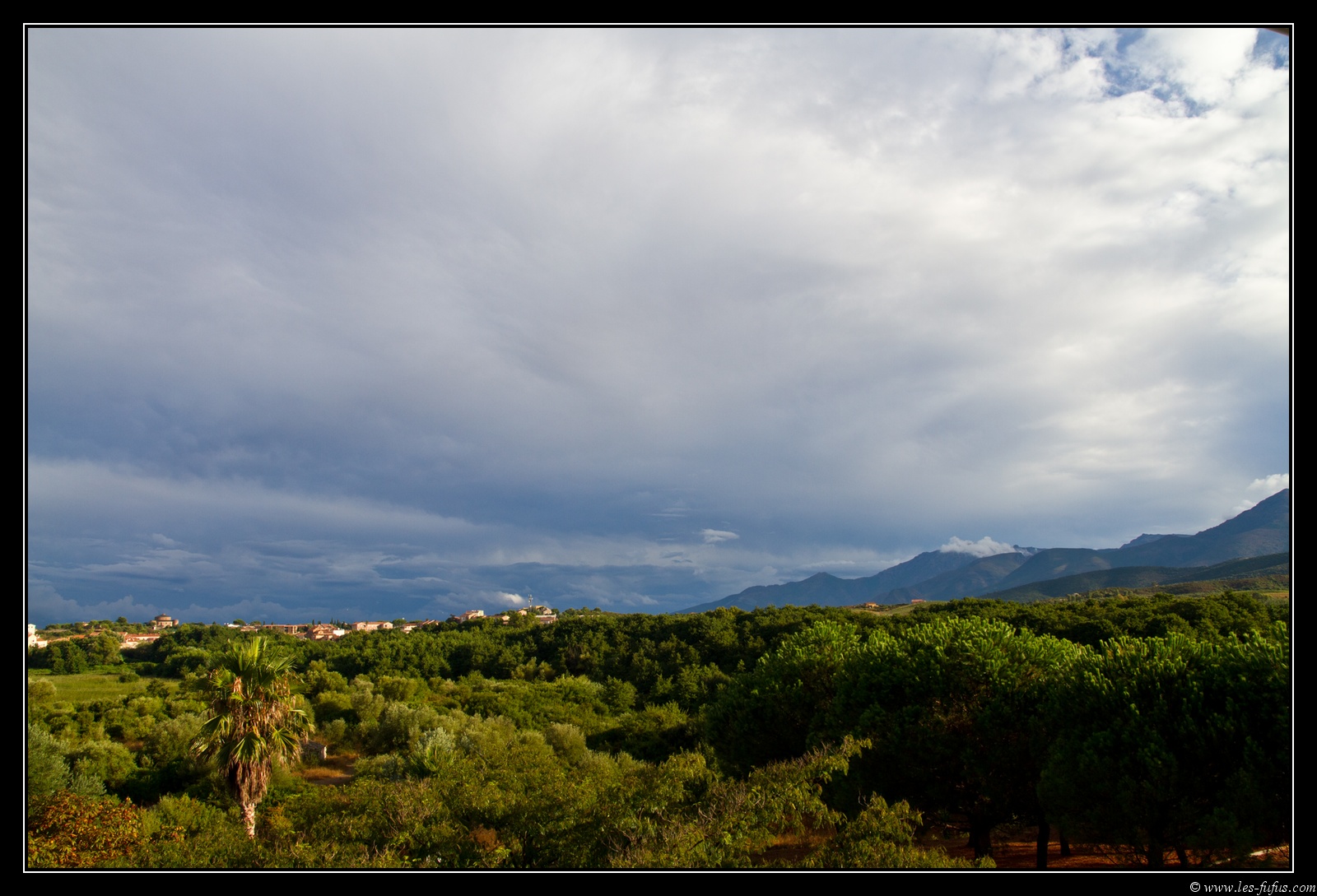 Mon chéri décide d’aller sur les hauteurs de Bastia en empruntant des routes repérées par ses soins. Et au secours !!!! Demi-tours, graviers, chemins de terre, tout y passe ! Il était en forme le Fufu quand il a préparé son road-book. Mais de lui-même il se rend compte que ça ne vas pas être possible et surtout que ça, c’est sur, ça pas le faire me concernant pour un début de voyage !