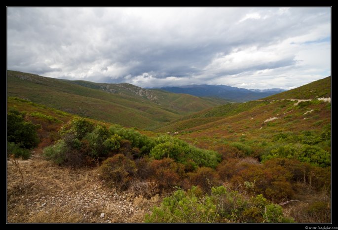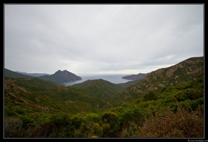 Nous quittons St Florent de bon matin, à nouveau par la route du désert des Agriates. La route est un peu humide et les touristes doivent encore être à leurs hôtels. On marque quelques arrêts photo.