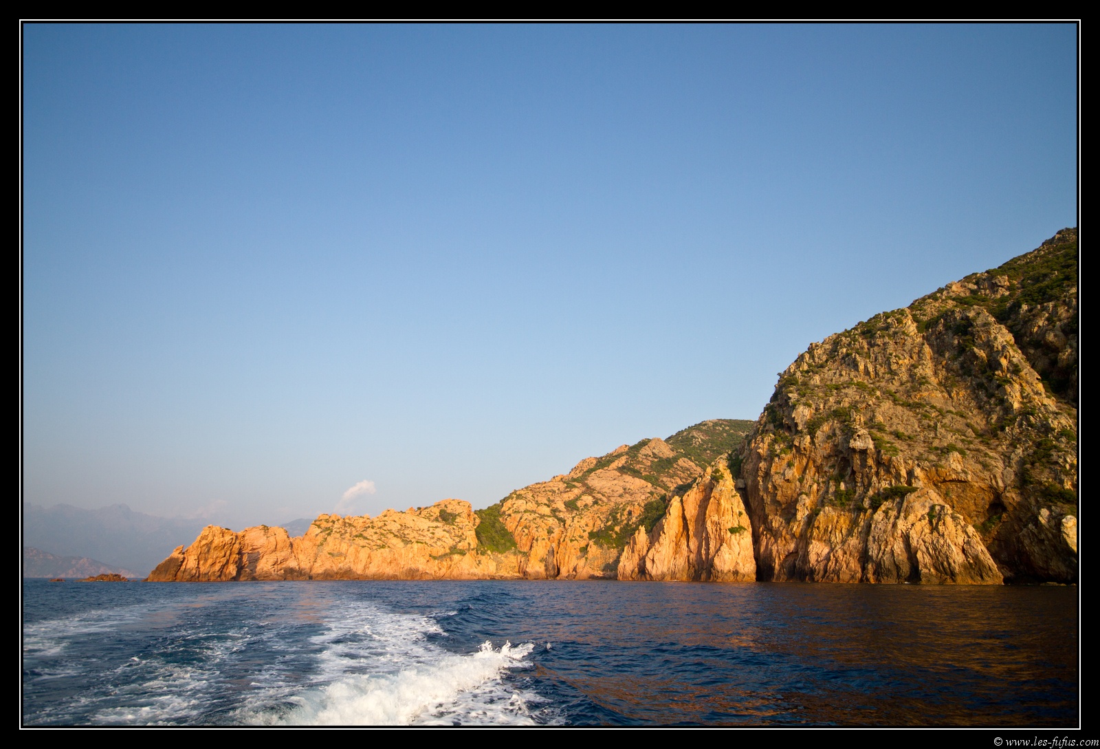Notre tour nous emmènera le long des calanques de Piana avant d’atteindre la pointe du Capo Rosso. A plusieurs endroits, le bateau nous montrera des curiosités, grottes ou passages. Le trajet aller se fait au plus prêt des parois, alors que le retour se fait plus au large et avec le trajet le plus optimale pour revenir au port.