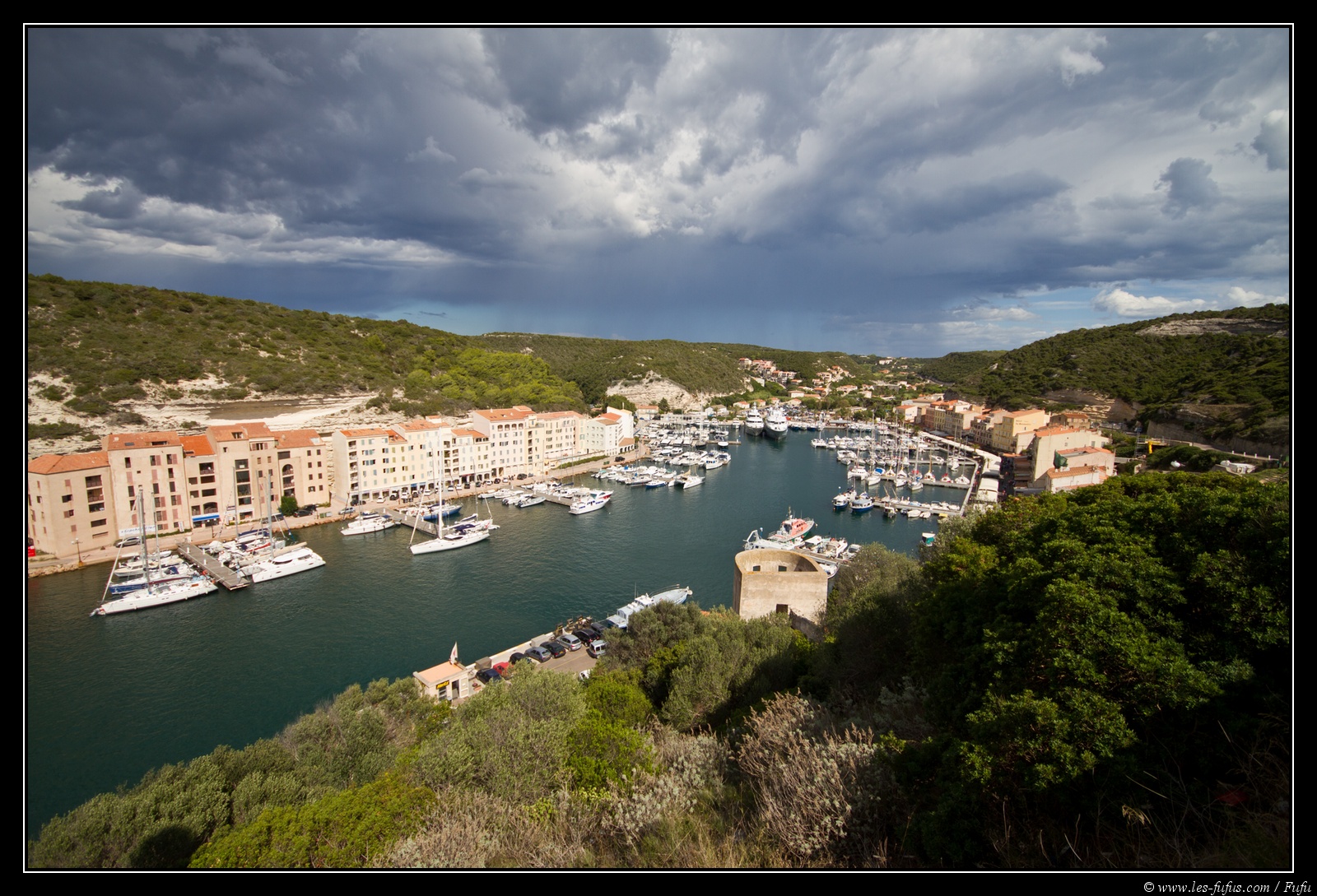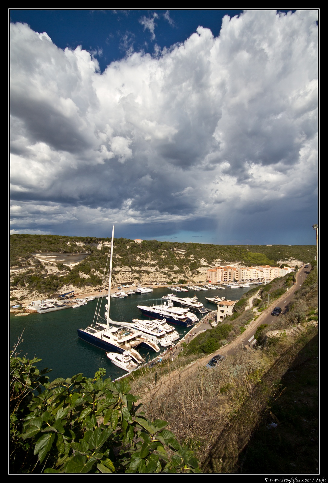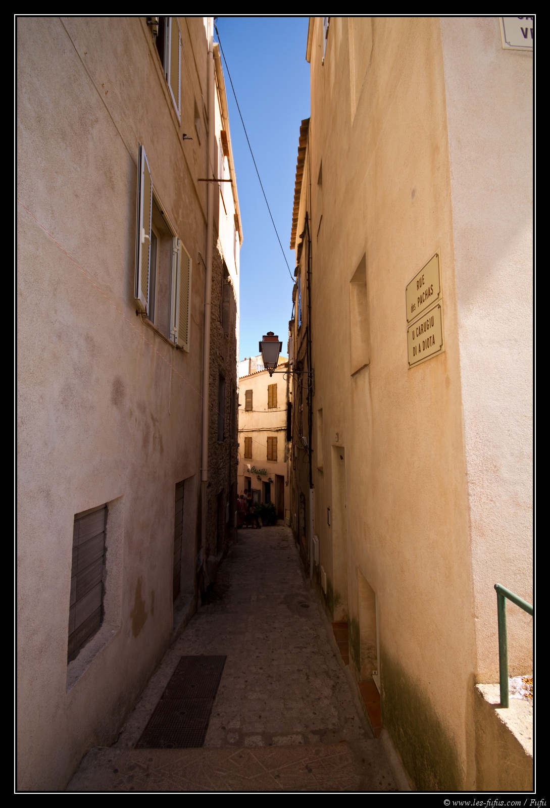 Nous longeons les hautes murailles de la ville et passons à coté des pontons, avec d’un coté, les petits bateaux des corses, et de l’autre coté, ceux réservés aux luxueux yachts.