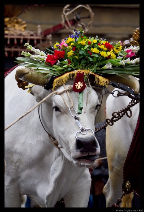 On part alors à la découverte de la ville sans vraiment de but précis, quand on passe devant la Piazza Della Repubblica, où ont lieu des festivités : on a droit aux lanceurs de drapeau, fanfare, personnes en costumes d’époques, procession et attelage de bœuf de cérémonie, etc… !!