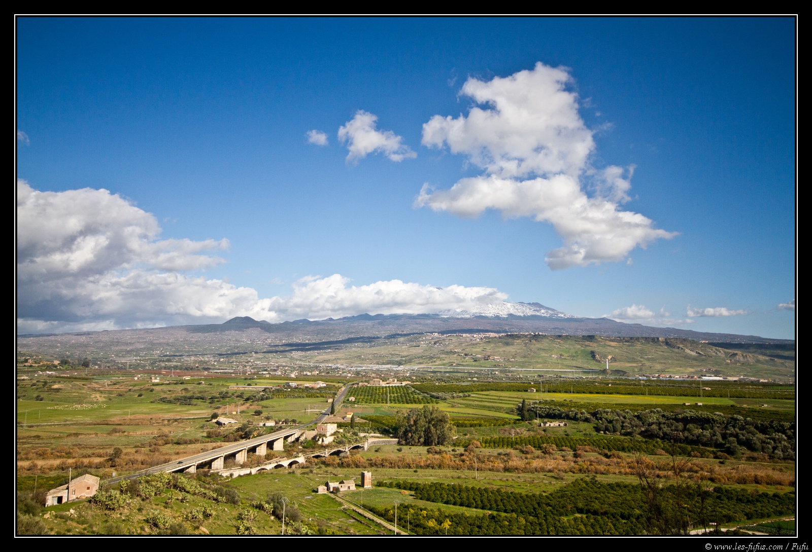 Nous redescendons vers la ville de Bronte puis partons pour Centuripe. En chemin, on fait une dernière photo de l’Etna.