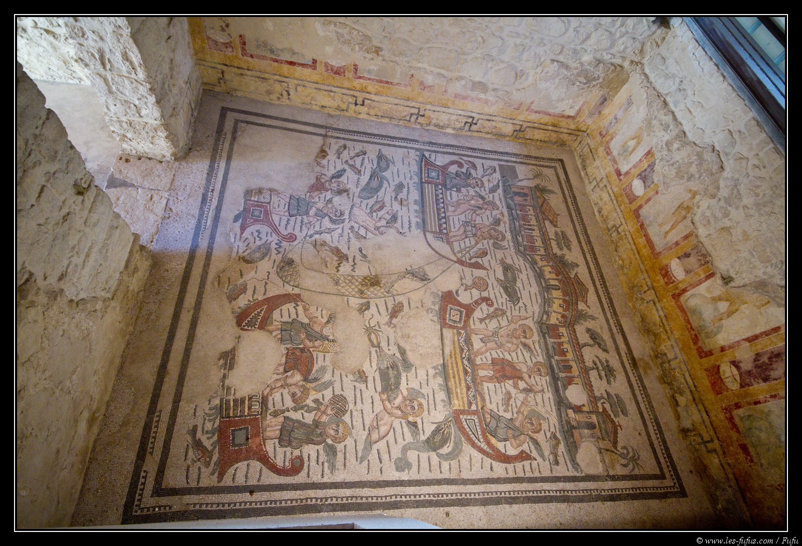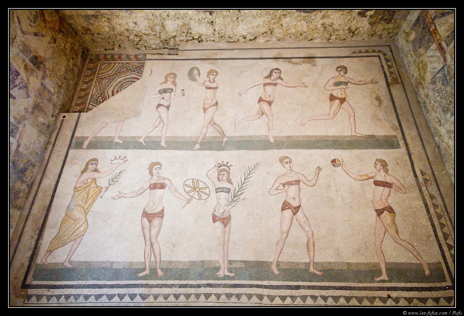 Il est environ 3h00 de l’après midi quand nous atteignions le parking de la Villa romaine du Casale (lien Wikipédia). Ce site archéologique est inscrit à l’Unesco. C’est une villa romaine datant du III siècle dotée de riches mosaïques. Il nous faudra plus d’une heure pour la visite complète. Les mosaïques sont superbes. A ne pas rater à mon sens.